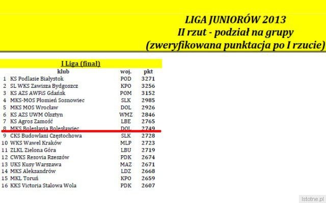 Międzyszkolny Klub Sportowy Bolesłavia w kategorii juniorów znalazł się w najwyższej lidze lekkoatletycznej w Polsce. Nasi lekkoatleci zgromadzili 2749 punktów podczas 25 startów indywidualnych. Historyczny awans do szesnastu najlepszych drużyn w kraju jest dla klubu i miasta ogromnym sukcesem. W klasyfikacji pierwszej ligi Bolesłavia obecnie zajmuje ósmą lokatę. W finale Ligi Juniorów, który odbędzie się we wrześniu, zawodnicy MKS Bolesłavia będą walczyć o jeszcze wyższe miejsce w tabeli.
