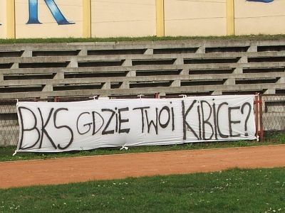 Widzowie sobotniego meczu, oprócz oglądania gry piłkarzy, byli także świadkami protestu kibiców. Kibice z Bolesławieckiego Klubu Kibica od pewnego czasu nie są wpuszczani za darmo na mecze w Bolesławcu. Nie zostali wpuszczeni na stadion również w sobotę. Dlatego przez całą pierwszą połowę meczu przed jednym z pustych sektorów był wywieszony transparent o treści "BKS gdzie twoi kibice?". W drugiej połowie kibice pojawili się w swoim sektorze i wywiesili kolejny transparent "Mimo kłód rzucanych przez zarząd z wami będziemy na dobre i złe!". Mimo protestu kibice dopingowali BKS przez całą drugą połowę meczu.