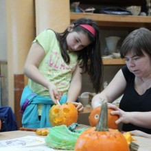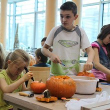 Po krótkim wprowadzeniu Edyty Orlińskiej, instruktorki BOK-MCC uczestnicy dekorowali rozdane dynie. Za pomocą markera narysowali oczy, nos i usta i nadali swojej dyni oryginalny wygląd. Z pomocą opiekunów wycinali, żłobili i dekorowali dyniowe lampiony. Każda z dyń miała odrębny charakter jedne były radosne i uśmiechnięte, inne groźne i straszne. Dzieci były dumne ze swoich prac i chętnie je prezentowały. Gotowe lampiony dzieci zabrały do domu, aby zapalić je po zapadnięciu zmroku.