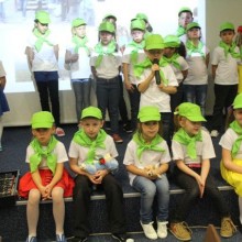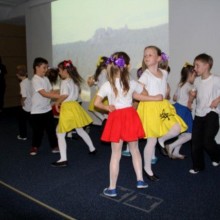 Prezentacja filmów i zdjęć związanych z projektem przeplatana była występami dzieci z klas 1-3, które zatańczyły czeski taniec – polkę oraz zaśpiewały piosenki turystyczne. Zwieńczeniem współpracy jest przewodnik turystyczny „Karkonosze i Ziemia Czeskolipska w naszych oczach”.
